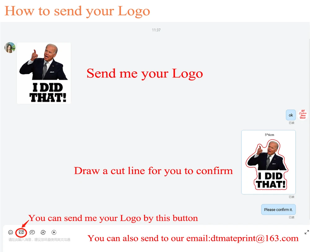 Мы можем напечатать образец вашего логотипа стикер для вас, чтобы увидеть немедленно.