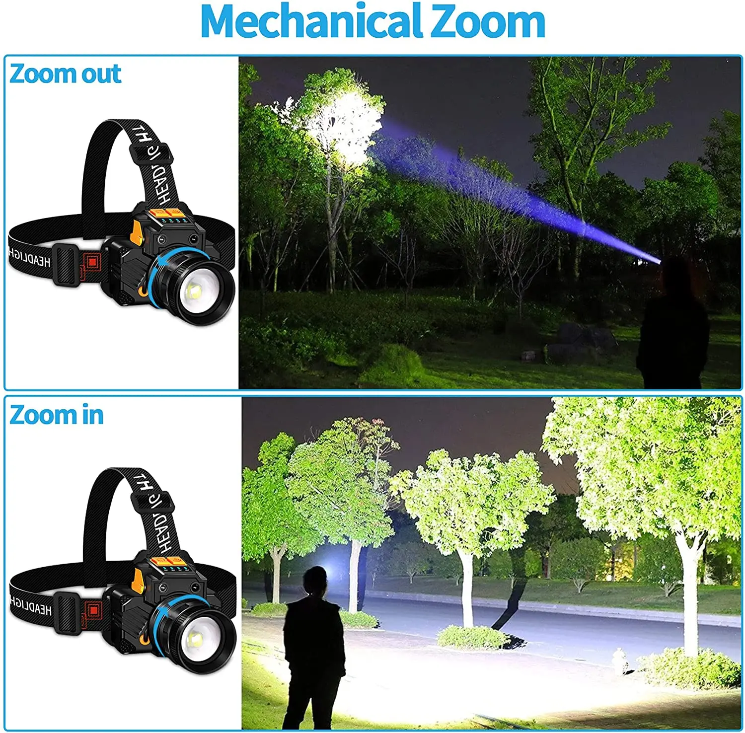 ✅4. Вращение на 90 ° и функция масштабирования: перезаряжаемый светодиодный налобный фонарь может поворачиваться на 90 градусов для более гибкого освещения. Фокусировка может регулироваться путем вращения фары. Zoom out-это прожектор для дальнего наблюдения, а zoom-прожектор для широкого освещения. Удовлетворить ваши различные потребности в освещении.