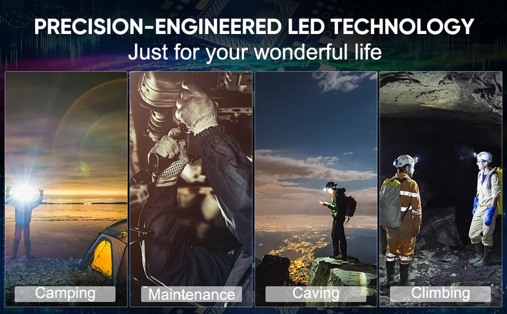 Watводонепроницаемость и ударопрочность 】-может быть погружен в воду в течение короткого времени, старайтесь не превышать получаса. Испытание на падение 2 метра. Фары являются идеальным дополнением для бега, кемпинга, рыбалки, пеших прогулок, альпинизма, охоты или велосипедного снаряжения.