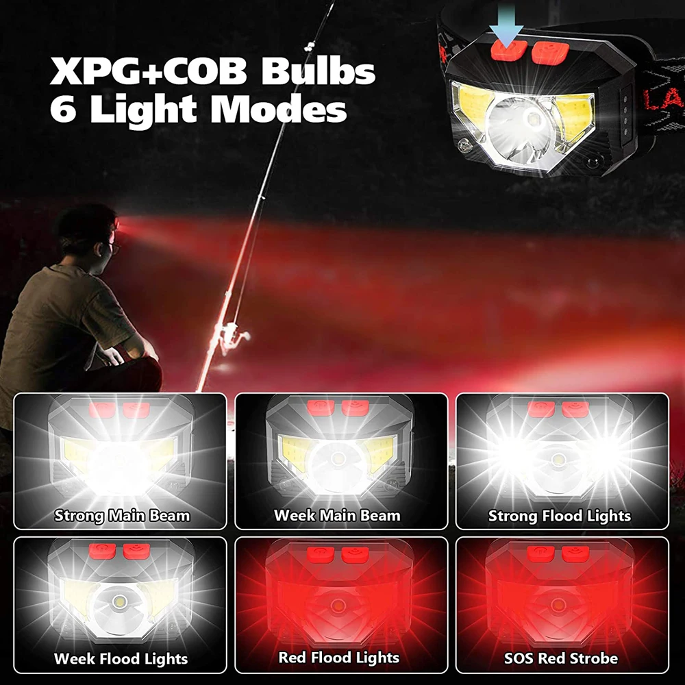 Handfress 8 режимов датчик движения мощный светодиодный светильник налобный фонарь COB Flash светильник Фонарь налобный светильник для кемпинга рыбалки