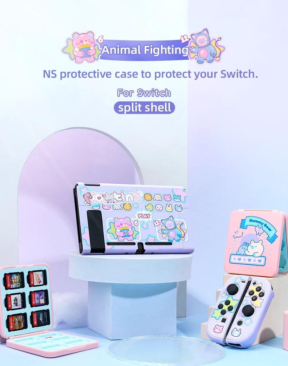 Отзывы о Новый чехол GeekShare для Nintendo Switch Kawaii Animal Fighting защитный разделенный Joy-con ДЛЯ NS
