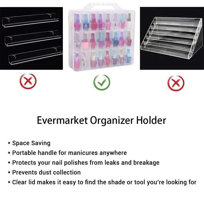 Вместительный Размер отсека вмещает различные размеры и формы бутылки лака для ногтей с различными брендами идеально от разрыва и запутывания вместе.