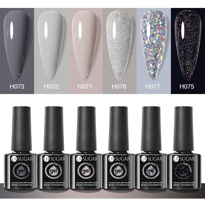Отзывы о UR SUGAR 7ml Gray Nude Color Gel Nail Polish Glass Bottle Glitter Sequins Semi-permanent UV LED Soak Off Nails Art Gels Varnish - купить по