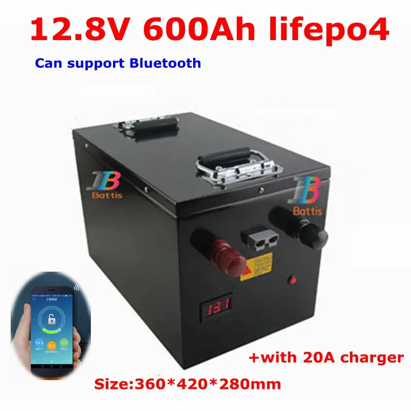 Литиевая батарея 12,8 V 600Ah 12V Lifepo4 150A Bluetooth приложение для 2400W солнечного хранения резервного питания вилочного погрузчика + зарядное устройство 20A