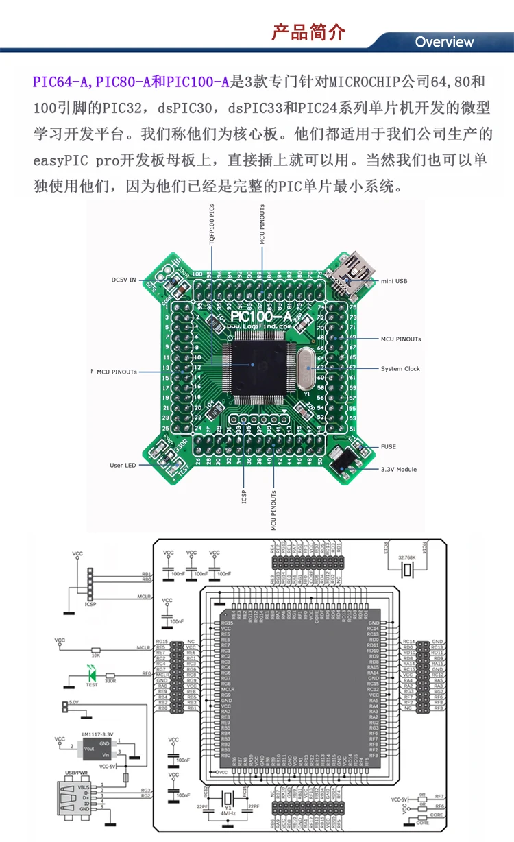 Pic64-a, pic80-a и pic100-a три микрочипа 64,80 и 100 pin PIC32, dsPIC30, dsPIC33 и PIC24 серии микрочипов платформы развития микрочипов. Мы называем их основными платами. Они применимы к материнской плате easyPIC pro development board, произведенной нашей компанией, которая может быть непосредственно подключена и использована. Конечно, мы также можем использовать их отдельно, потому что они уже являются полной монолитной минимальной системой.