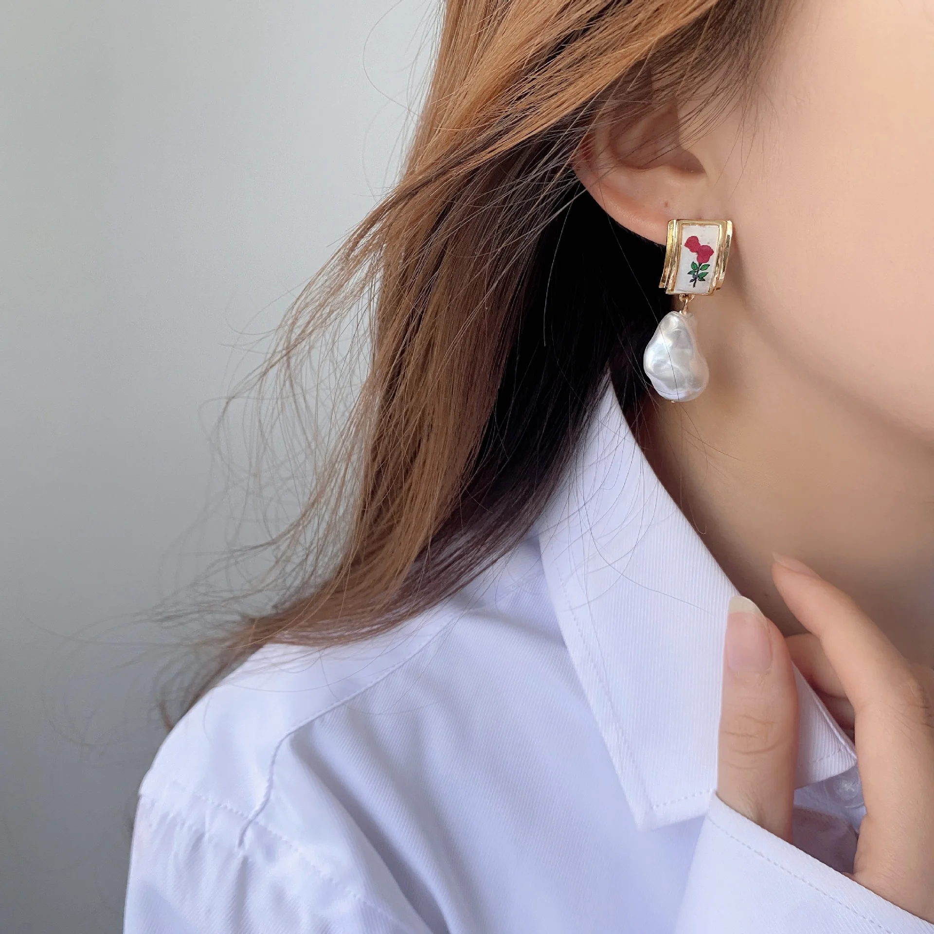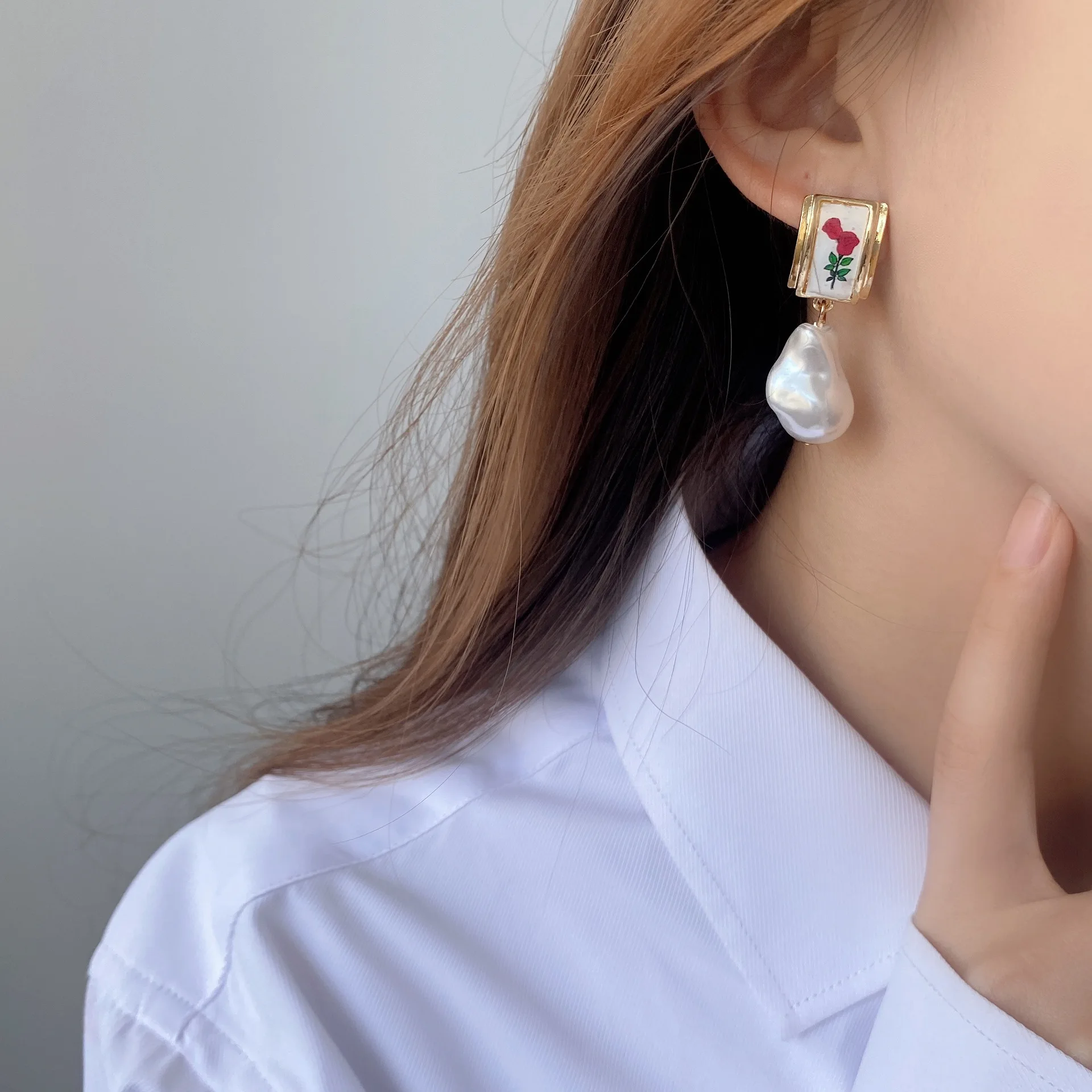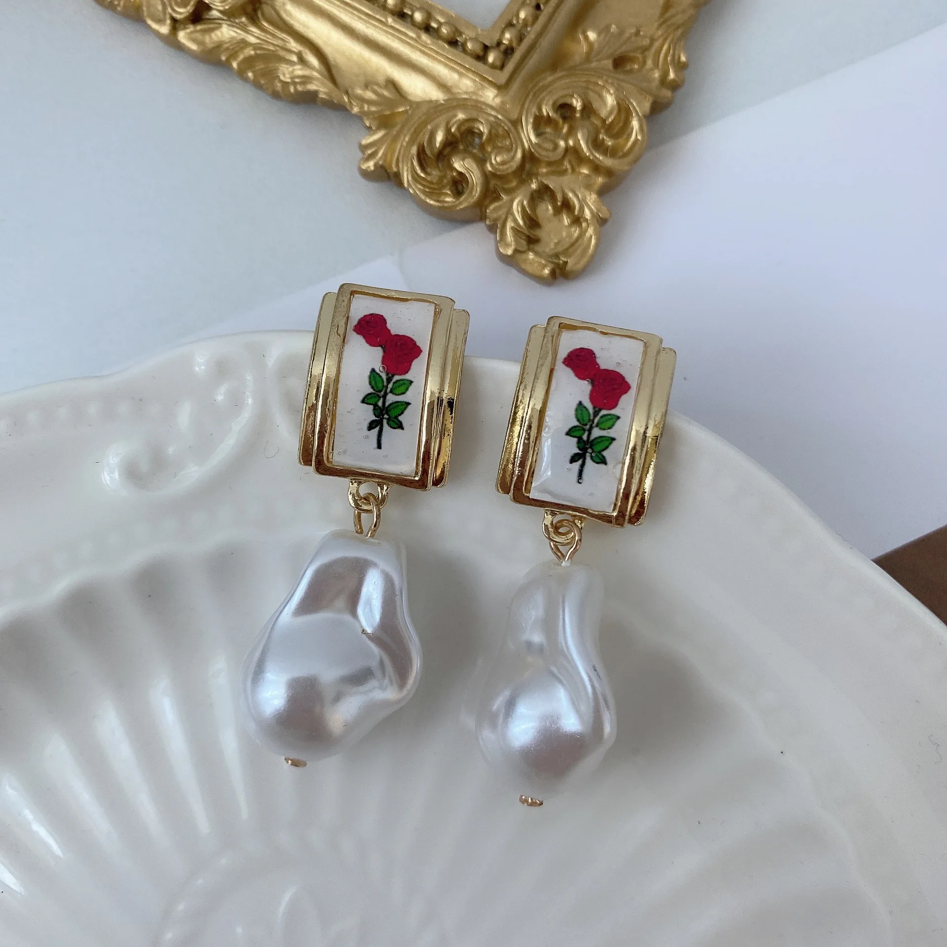 S925 Серебряные иглы Французский Ретро стиль барокко красная роза серьги корейские винтажные женские темпераментные нерегулярные жемчужные серьги-гвоздики