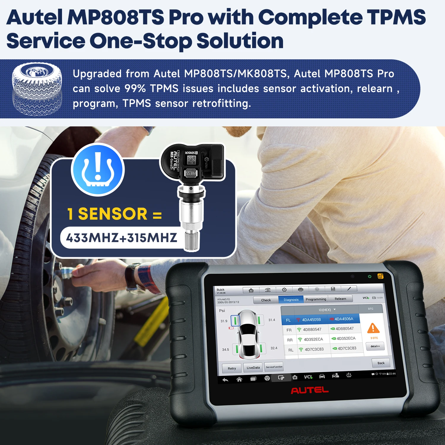 👍【 2022 комбинация MK808BT/ MP808/ MP808K и TS601 】 Autel MaxiPRO MP808TS Pro, как 2022 новейший TPMS сервис и диагностический сканирующий инструмент, является модернизированным ver. MK808TS & MP808K & MP808. MP808TS Pro[plus 4 шт. 315 МГц mx-сенсор s] может не только выполнять почти все функции MS906/MS906BT с гораздо меньшими затратами, но и поддерживать Полные функции TPMS для активации и повторного изучения всех датчиков TPMS s, программа Autel MX-Sensor s, просмотр данных датчика, сброс сигналов TPMS и т. Д., что экономит ненужные затраты на дополнительный инструмент TPMS.