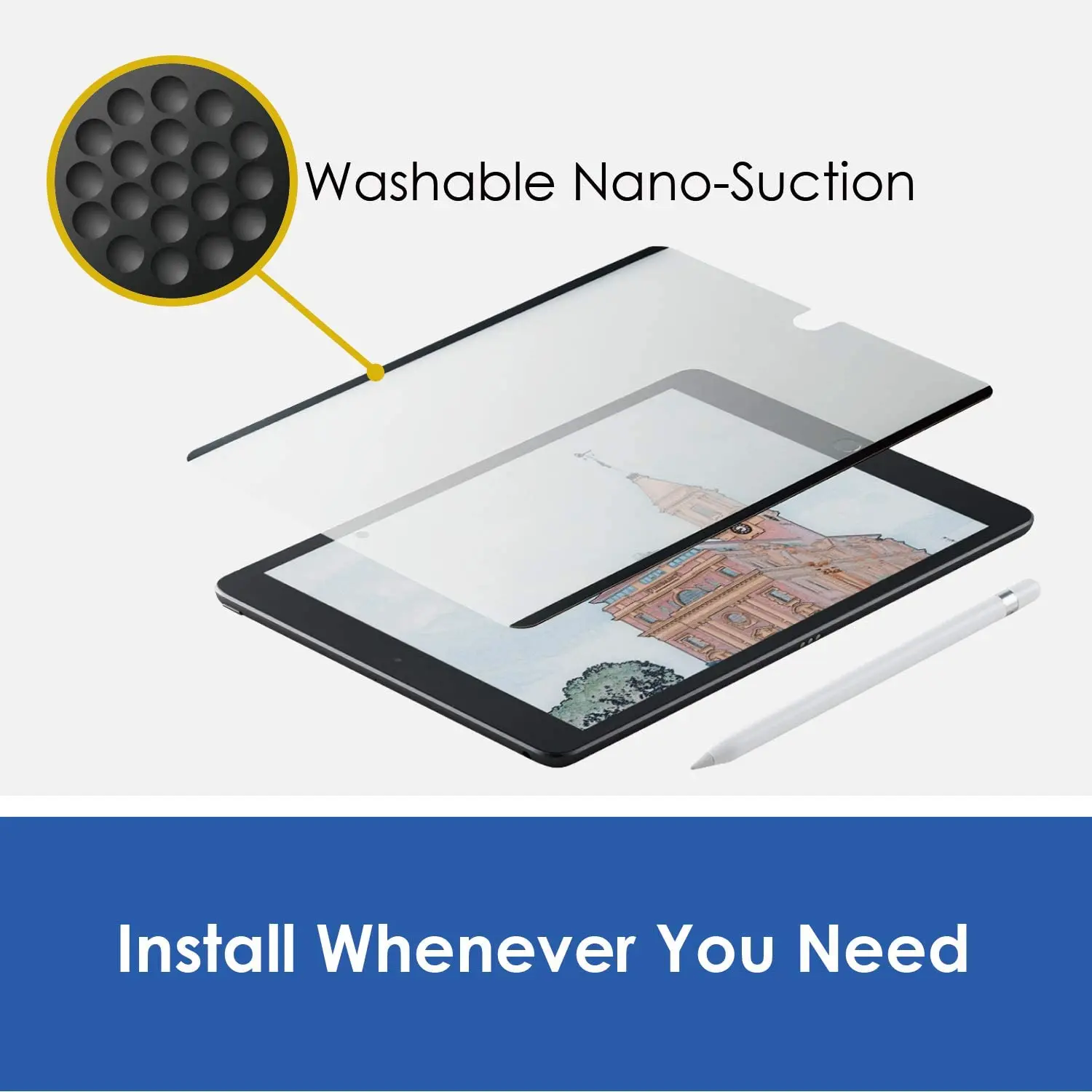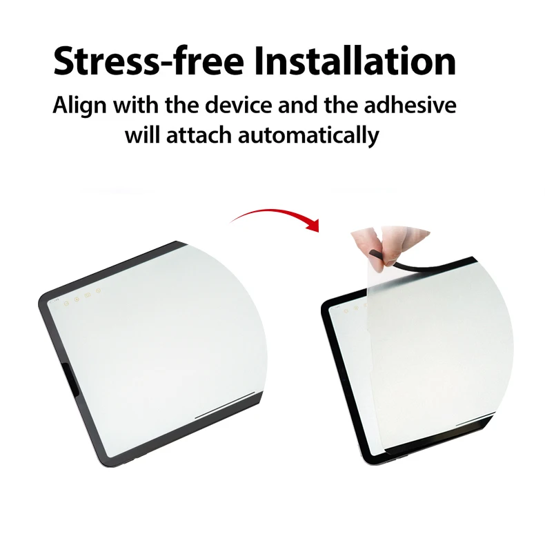 Благодаря технологии «NANO-SUCTION» защита экрана надежно остается на экране планшета без использования металла и магнита. Полностью съемный и многоразовый. Он поставляется с папкой для переноски для хранения протектора экрана, когда он не используется.《 С защитой от вредного синего светильник 》