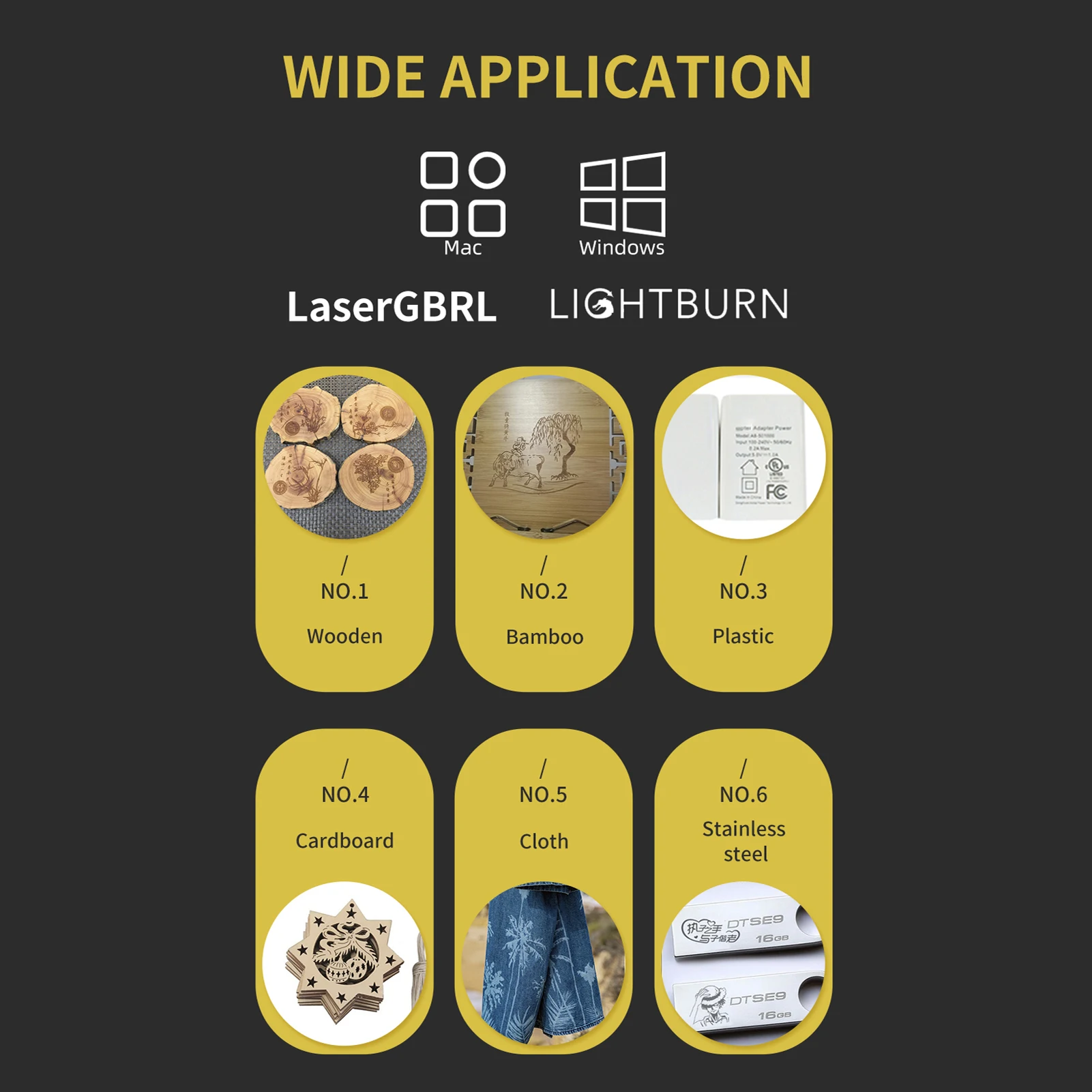 【Широкая Совместимость 】:Машина может быть совместима с различными зрелыми программным обеспечением гравировки, такими как LaserGRBL,LightBurn,Benbox и GrblController, а также системами Windows и MacOS.
