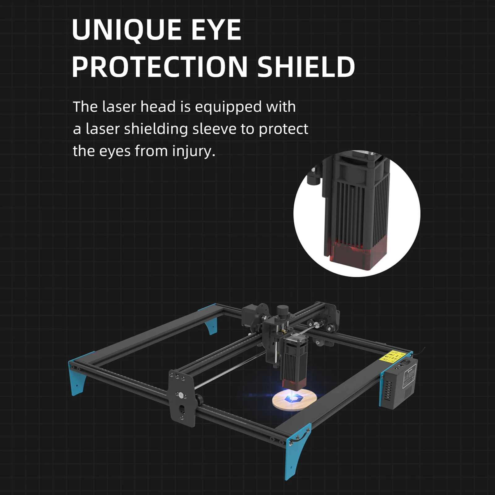 【Легкий и защитный дизайн для глаз 】:Лазерный гравер оснащен лазерной защитной втулкой для защиты глаз от травм, легкий и удобный для сборки и разборки.