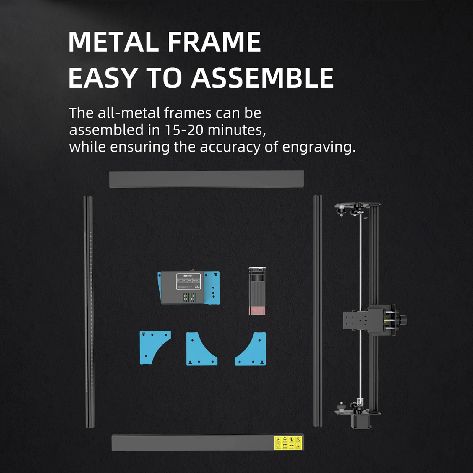 【Прочная и простая конструкция установки 】:Полностью металлическая конструкция делает машину более прочной и долговечной и улучшает точность гравировки. Вся конструкция предназначена для быстрой сборки, и сборка обычно может быть завершена в течение 15-20 минут.