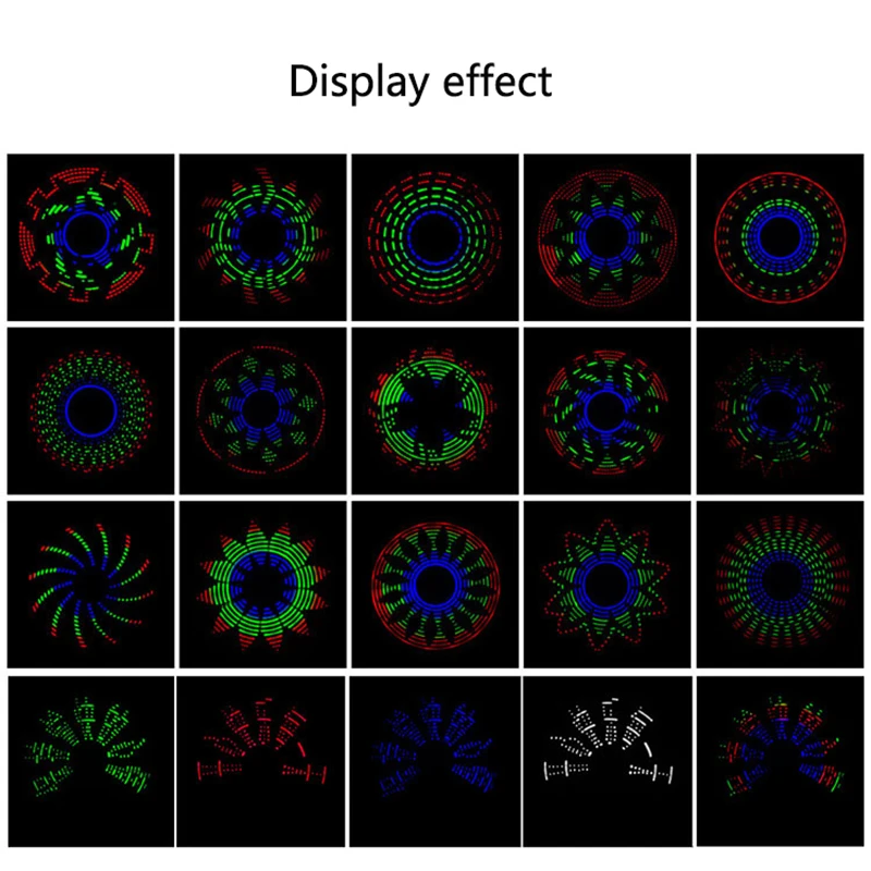 Гироскоп использует микрокомпьютер с одним чипом для управления 12 светодиодами, излучающими светильник, для вспышки в свою очередь. На экране одни мигающие время каждого светодиодный и на экране одни мигающие последовательности являются управления светодиодный по однокристальный. Когда электронный гироскоп вращается, появится соответствующий шаблон и текст.