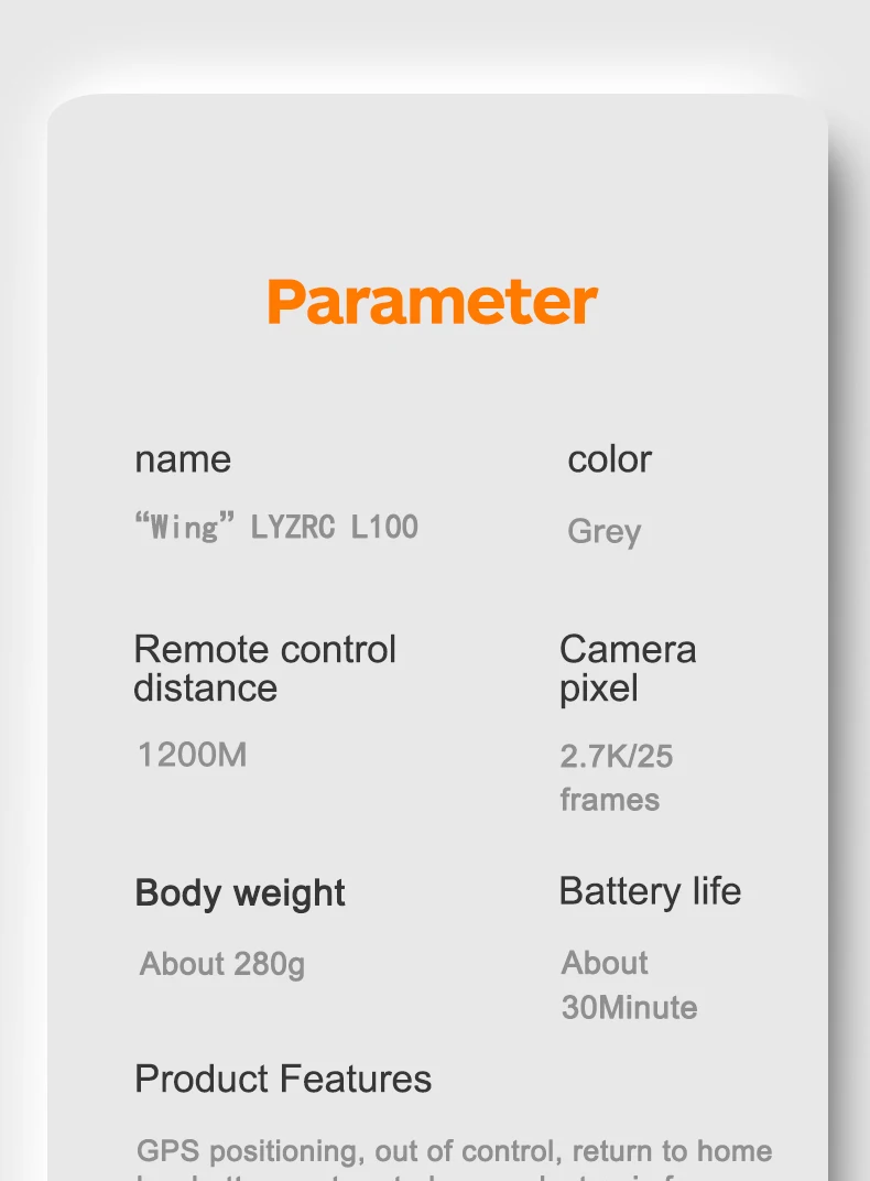 6-GPS вспомогательный полет. Предоставляет вам точные детали позиционирования вашего дрона. Дрон автоматически вернется домой точно, когда его батарея Низкая или сигнал слабый, когда вылет из диапазона, никогда не беспокоясь о потере дрона.