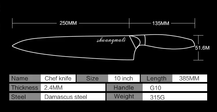 Отзывы о Shuangmali 10 дюймов нож для нарезки Дамасская сталь молоток мяса в полоску Кливер G10