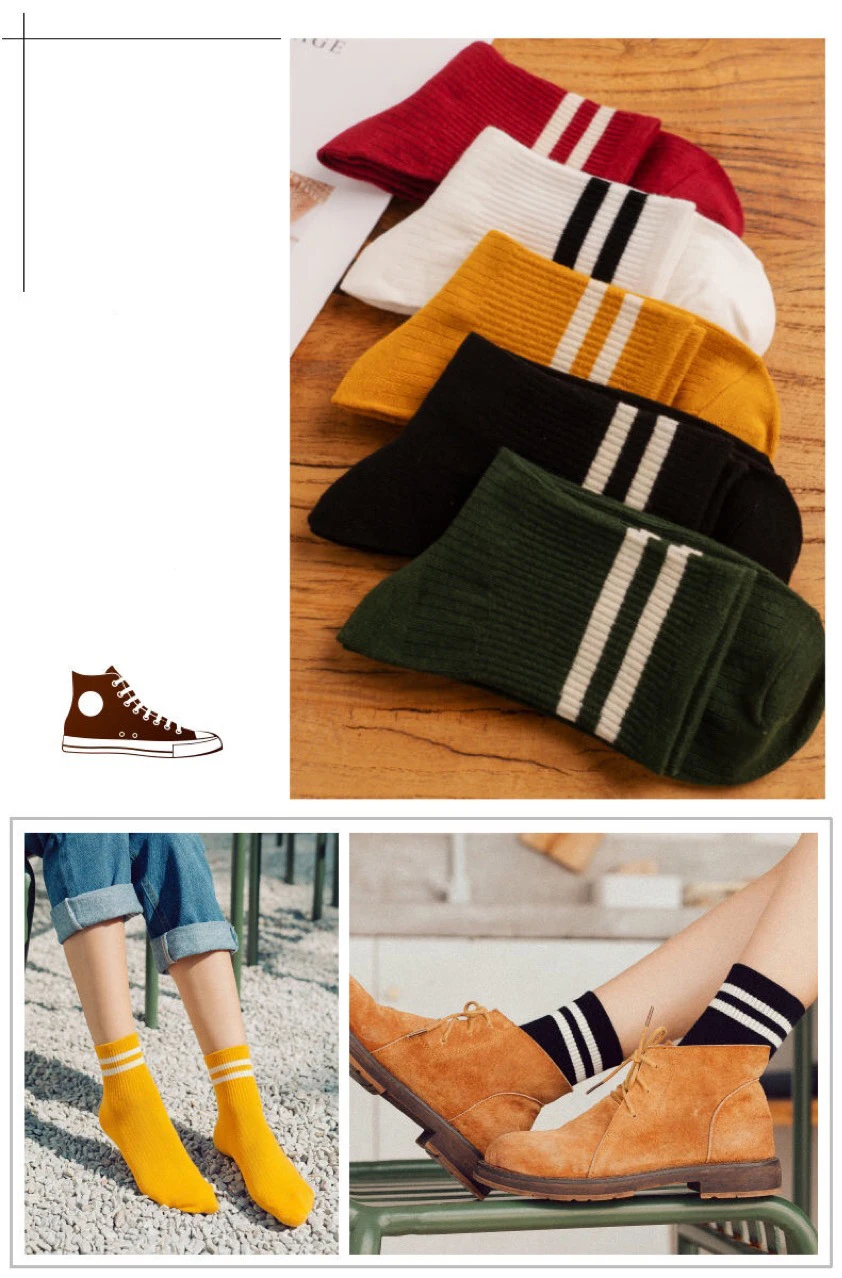 Отзывы о Хлопковые дышащие однотонные трикотажные носки в полоску Корейском стиле -