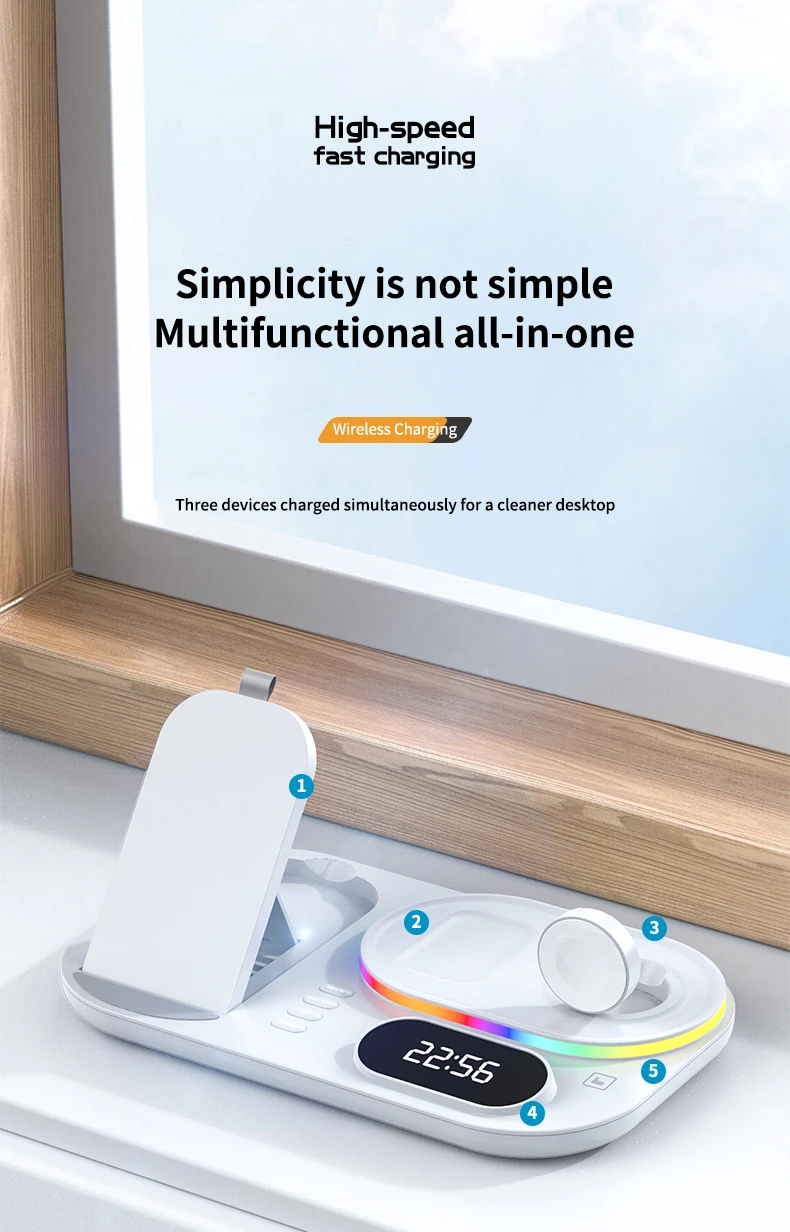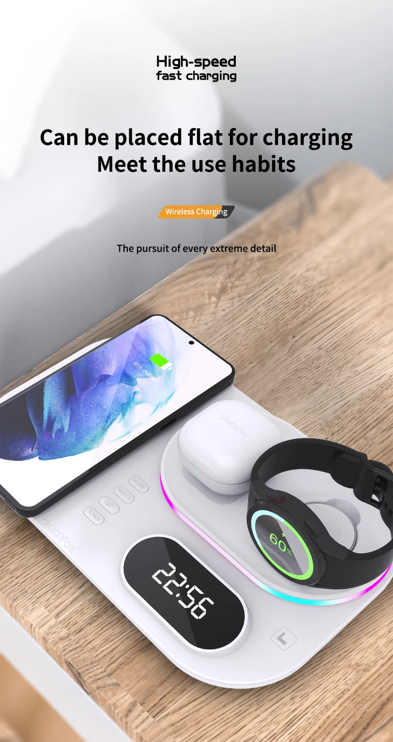 Отзывы о Светодиодная беспроводная зарядная станция 4 в 1 30 Вт с индикатором времени -