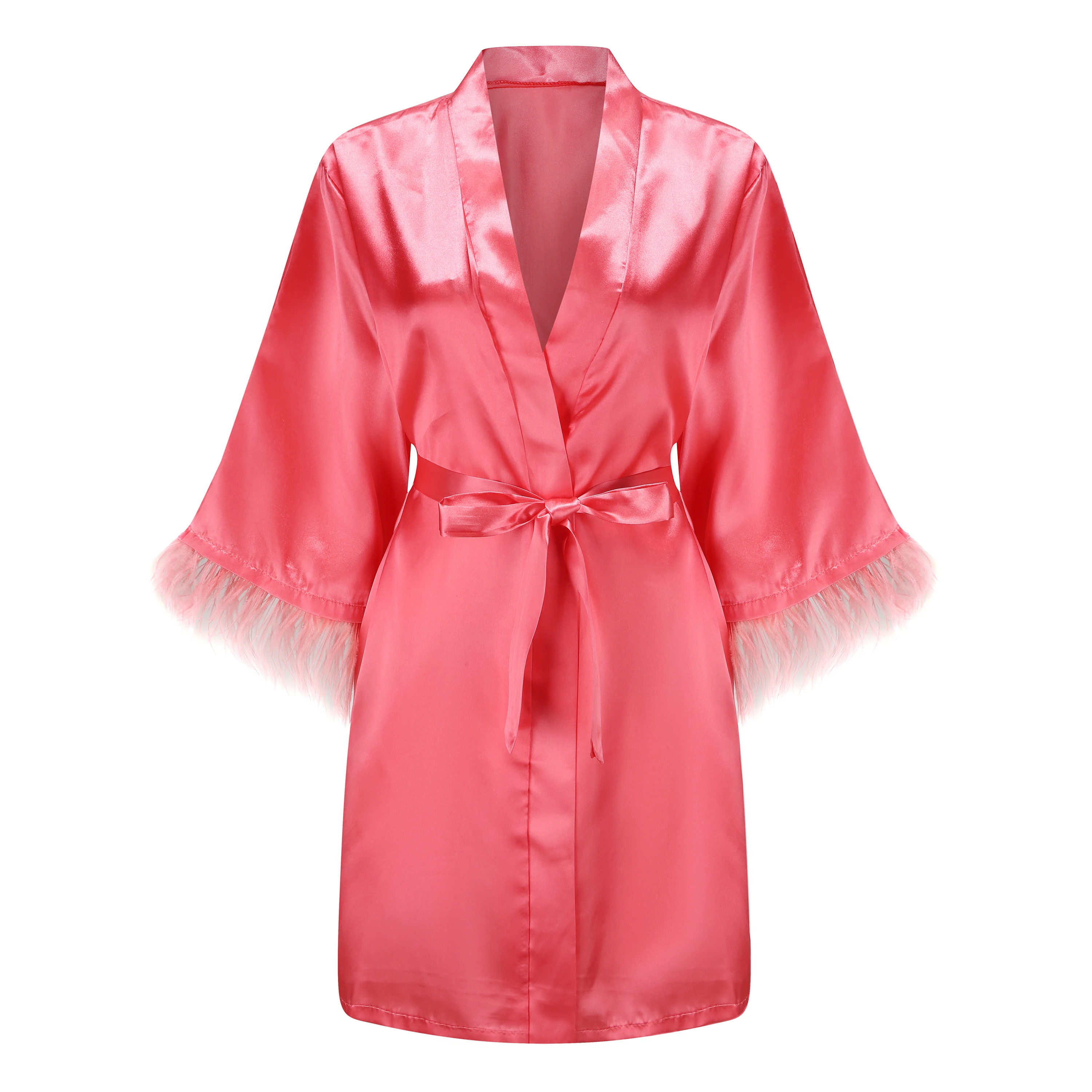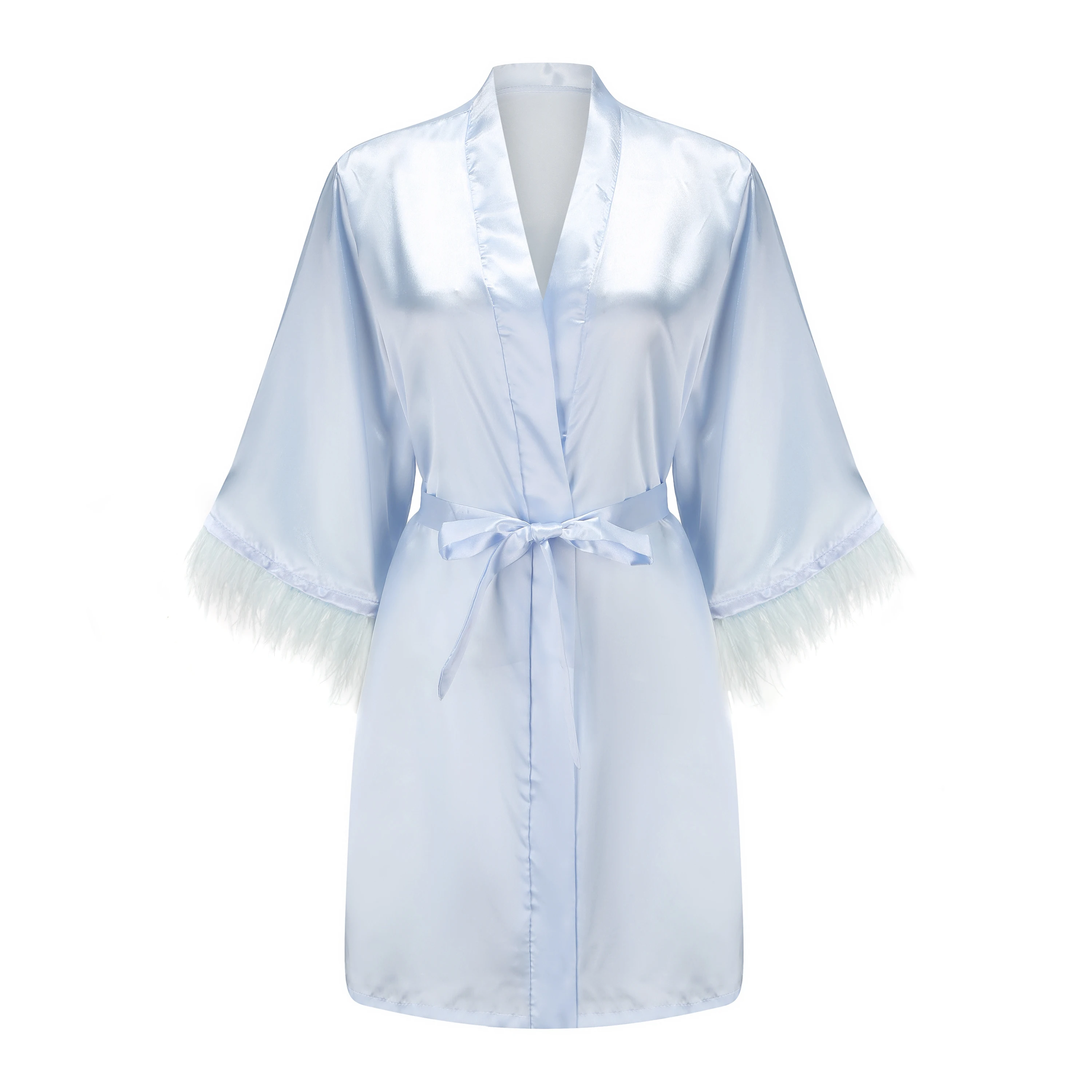 Отзывы о Халат женский атласный с перьями белая Пижама мехом длинными рукавами ночная