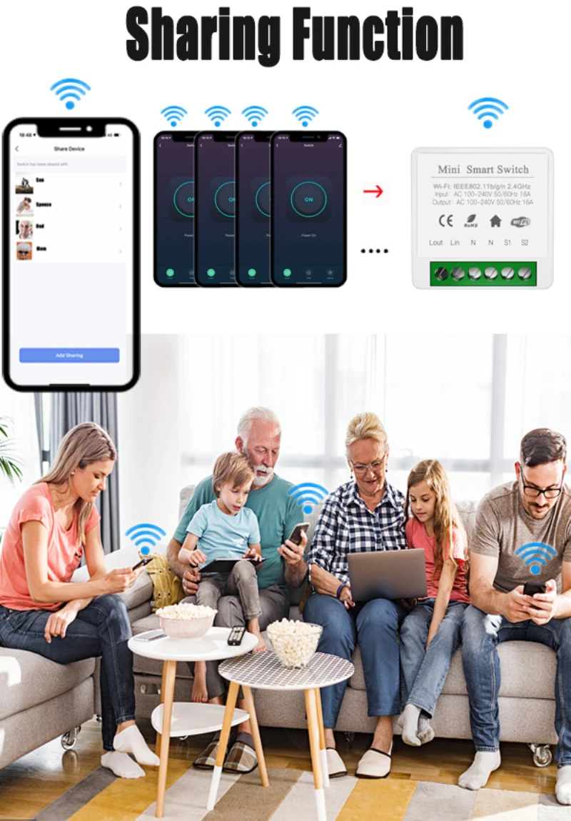 Управляйте включением и выключением устройства, синхронизацией, обратным отсчетом и другими функциями через мобильный телефон. Пока мобильный телефон имеет сеть, модуль переключателя дома можно контролировать по всему миру.