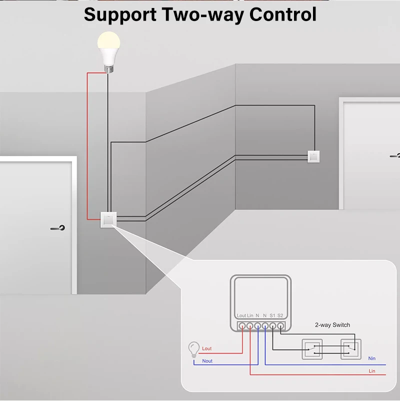 Его также можно подключить за переключателем для поддержки одного переключателя управления и двойного переключателя управления. Он может быть непосредственно установлен в коробке переключателя, чтобы скрыть модуль переключателя. Он также может быть установлен на двойном переключателе управления, не влияя на использование двойного переключателя управления.