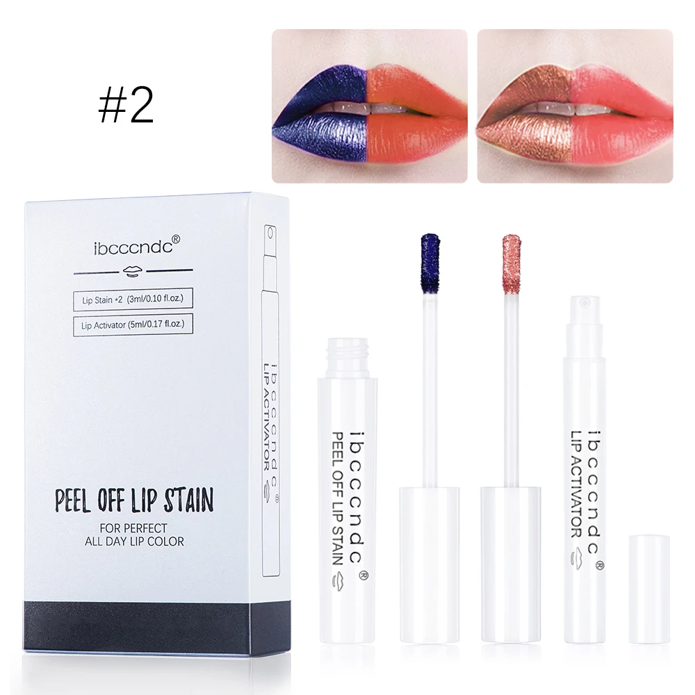 Новый шелушиться для губ татуировки, Длительное Действие, водонепрорицаемый, оторвать блеск для губ комплект 2 цветов жидкая губная помада тени; Прямая поставка