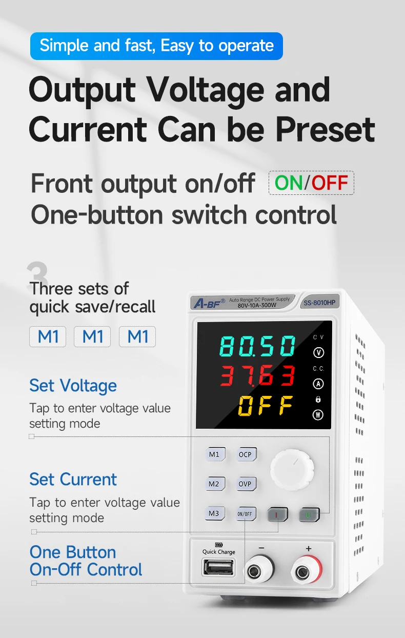 Мини Широкий диапазон любви программируемый DC Регулируемый источник питания, высокое качество, высокая стабильность экономического постоянного тока Регулируемый источник питания, LED четыре напряжения и тока дисплей, с защитой от перенапряжения (OVP ), защита от перегрузки по току (OCP ), OVP / OCP может быть установлен в соответствии с требованиями. С высокой стабильностью и сильной надежностью, это идеальный инструмент для лабораторий, производственных линий предприятия и бытовых приборов технического обслуживания. В то же время, эта серия источников питания может быть оснащена интерфейсами программирования для реализации дистанционного управления или автоматического управления.
