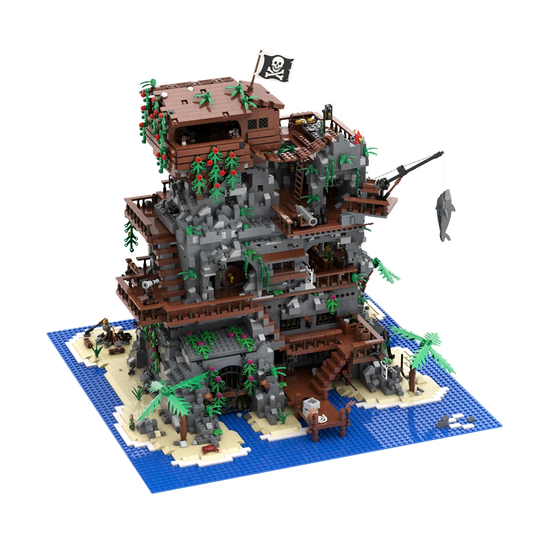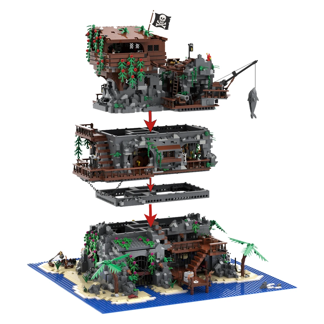 . Описание: Пиратская крепость из 3 частей, построенная на скалистом остров-Абсолютные звери, но много веселья, чтобы сделать. В комплекте с пещерой, подземельями, сокровищами, пиратским баром, Оружейной, ячейкой с рабочим механизмом для ловли и многим другим. Множество навесных и подвижных частей для максимального удовольствия. Этот MOC содержит списки деталей и инструкции для всей крепости, но разделен на секции, чтобы вы могли сделать этот проект более долгосрочным, если вы хотите, один раздел одновременно, Я надеюсь, вам понравится строить это так же, как и мы. Отзывы очень приветствуются. Яррр!