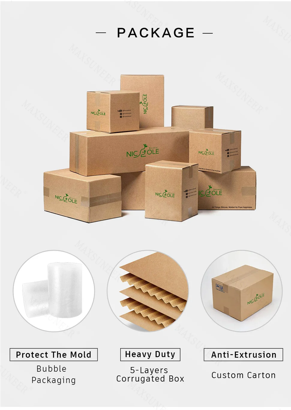 MAXSUNEER использует только высококачественный Платиновый пищевой силикон, который сертифицирован FDA и SGS, не токсичен, безопасен для пищевых продуктов, Ультра стабильный, безопасный для кожи, прочный и надежный.