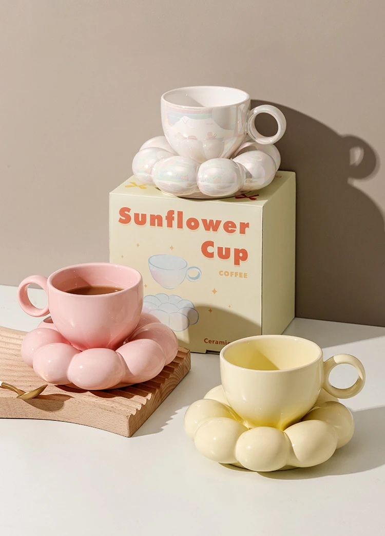 Отзывы о Милые фарфоровые кофейные чашки с подсолнухами кавайные искусственные ручкой