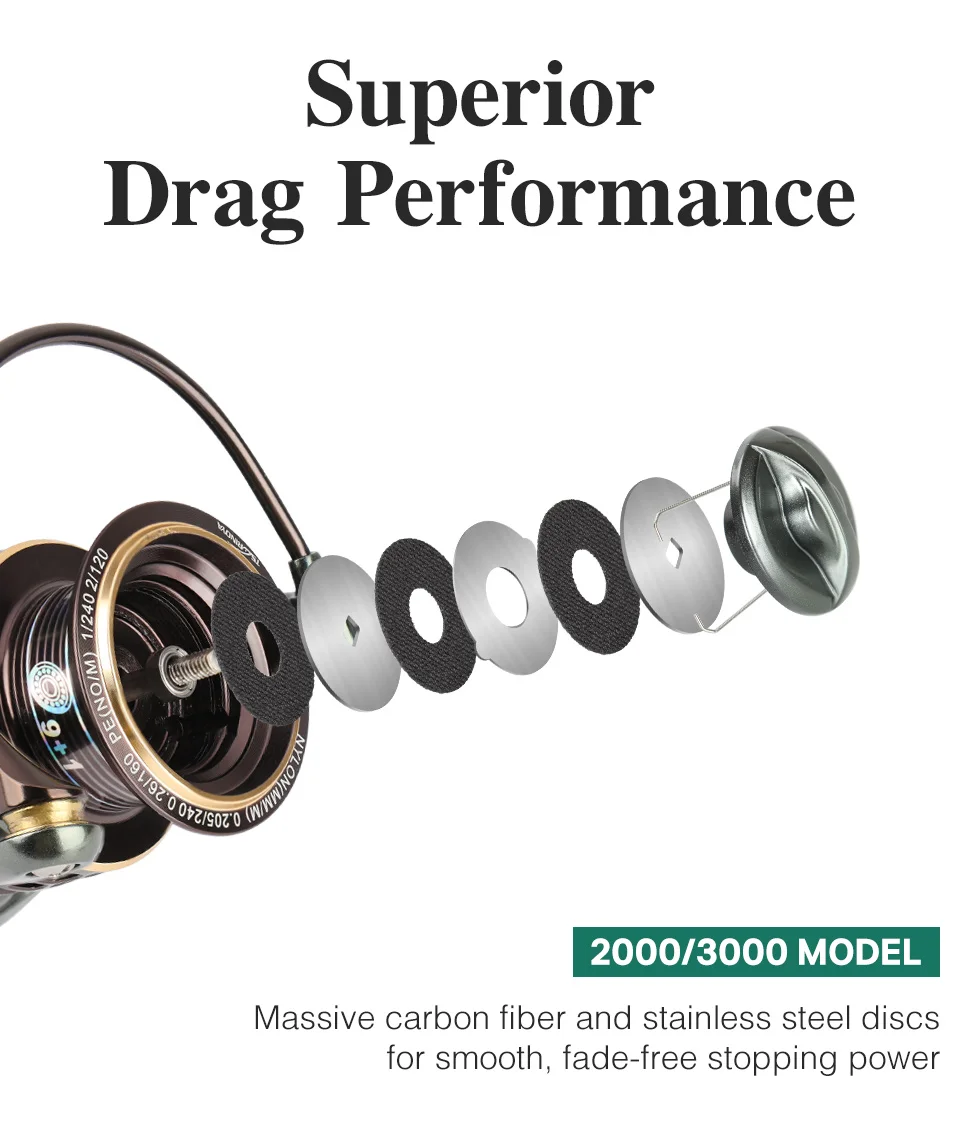 8. Тормозная система из углеродного волокна, легко справляется с внезапной большой рыбой.