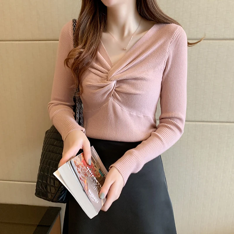 Отзывы о Сексуальный женский свитер JMPRS с V-образным вырезом модный вязаный пуловер