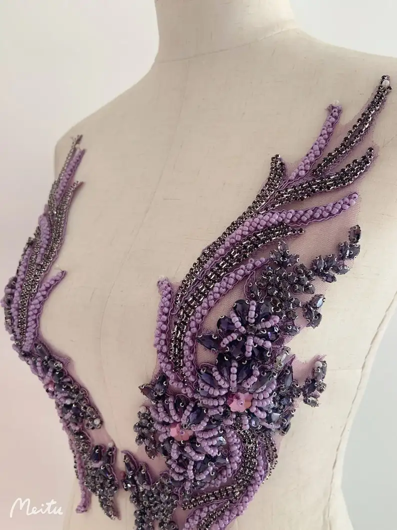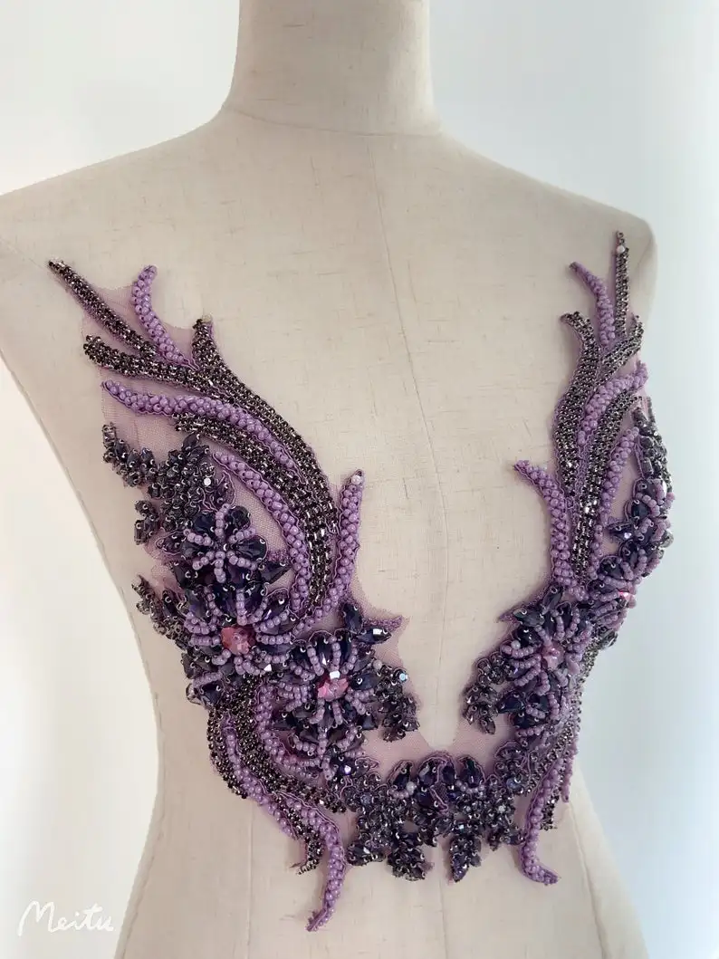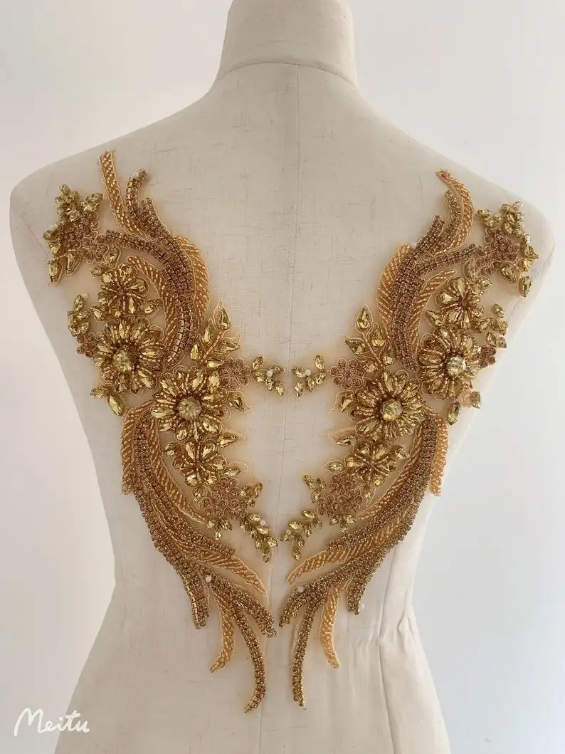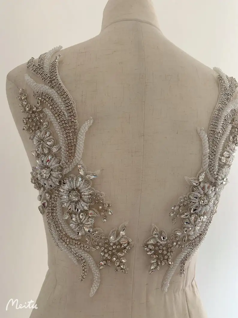 Серебряный Французский шарик аппликация лиф со стразами патч тяжелый шарик аппликация для кутюр WK201212 Размер 15 см * 30 см