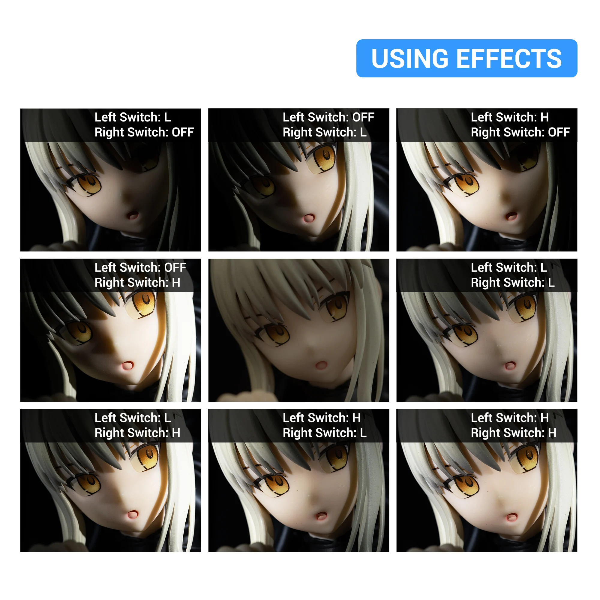 Переключатели с обеих сторон батарейного отсека позволяют 5 вариантов освещения