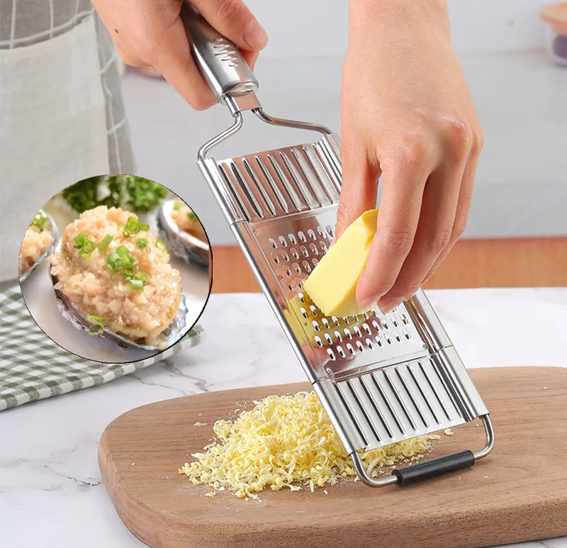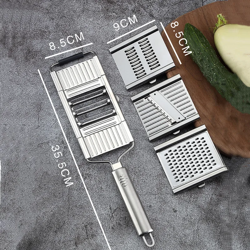 1. 3 (4) Различные размеры лезвий могут удовлетворить различные потребности в приготовлении пищи. Измельчитель подходит для сыра, капусты и других продуктов, а средний измельчитель подходит для таких овощей, как морковь и кабачки. Вы можете использовать измельчитель, мясо измельчается машиной, которая добавляет богатый вкус блюдам.