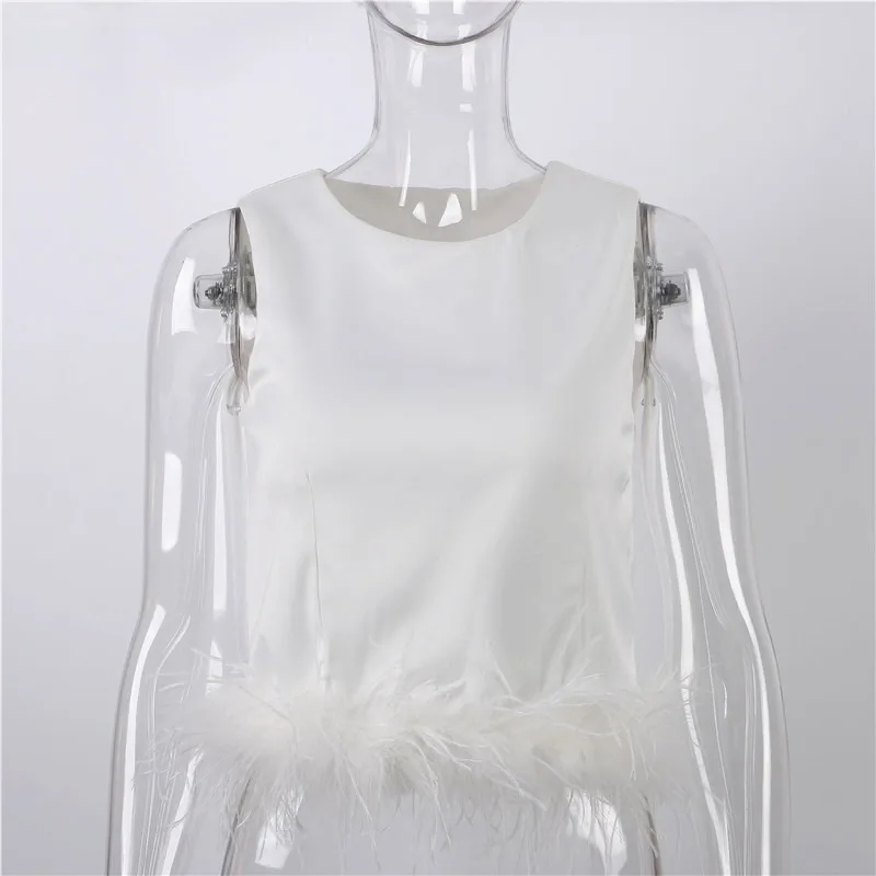 Отзывы о Женский укороченный топ без рукавов с перьями белый облегающий однотонный