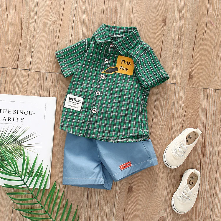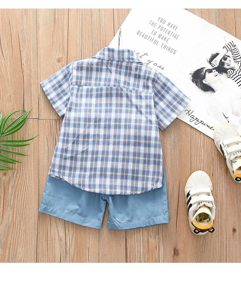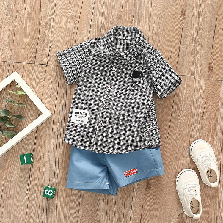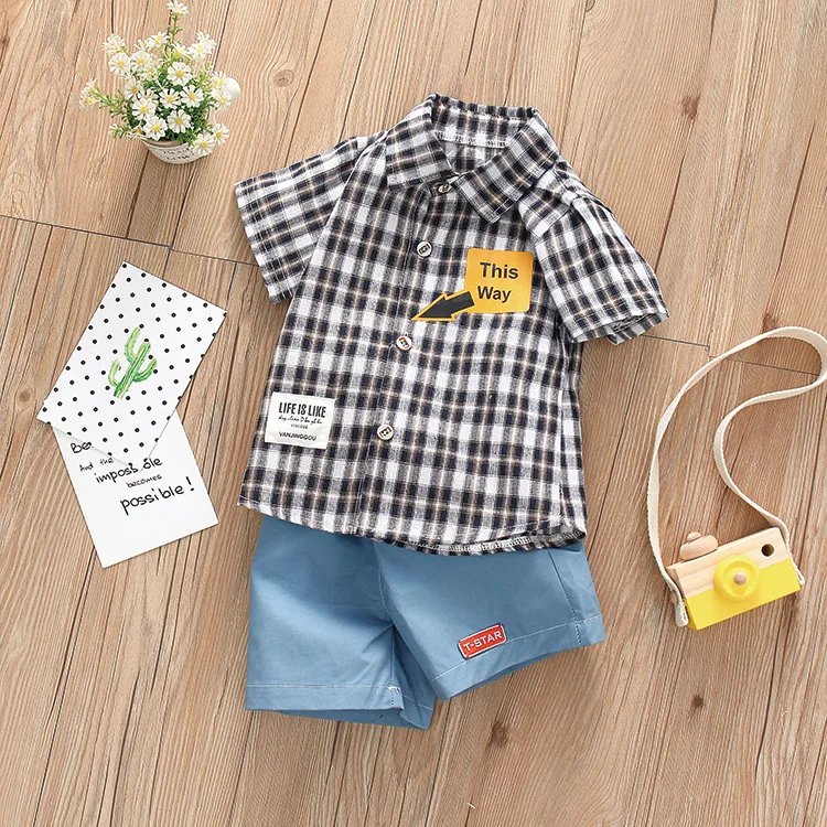 Отзывы о 2 шт. клетчатый костюм для мальчиков и девочек с коротким рукавом - купить по