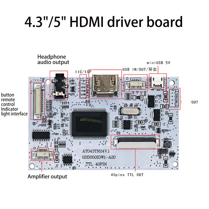 Интерфейс экрана оснащен высококачественными позолоченными соединителями-40PIN-HS050IDW1-A20; 14 плат для драйвера используют компоненты SMD