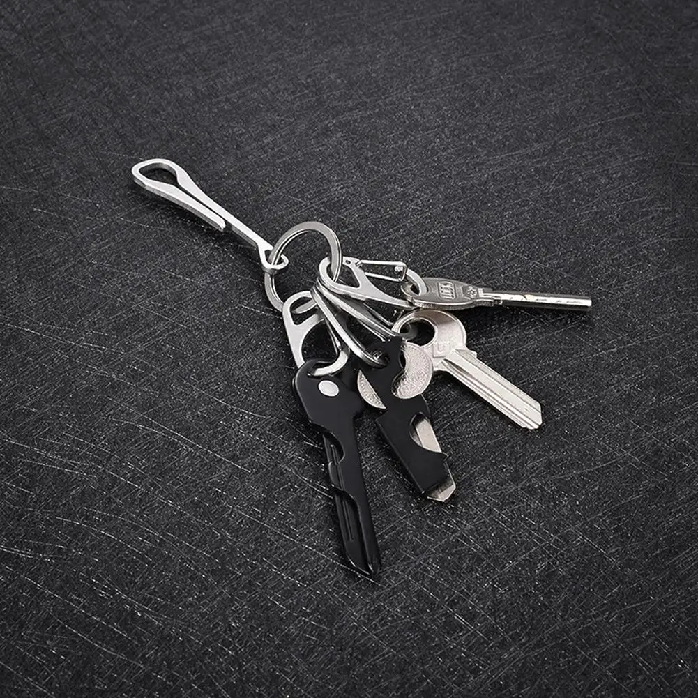 Характеристики: Материал: нержавеющая сталь Цвет: серебристый, черный Вес: 4 г Количество: 2 шт. Один размер: 15,3*32,5*2 мм/0,60*1,28*0,08" Размер упаковки: 33*16*5 мм/1,30*0,63*0,20" Использование: подключение и хранение ключей Примечания: 1. Возможны незначительные отклонения в размере из-за ручного измерения, различных методов измерения и инструментов. 2. Изображение может не отображать фактический цвет товара из-за различного фотографирования светильник, угол и дисплей монитора.