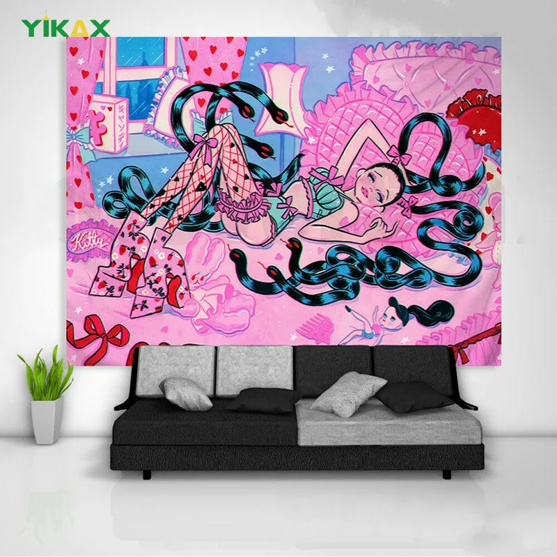 Отзывы о декор для комнаты милые гобелен на стену эстетика Настенное одеяло в стиле аниме