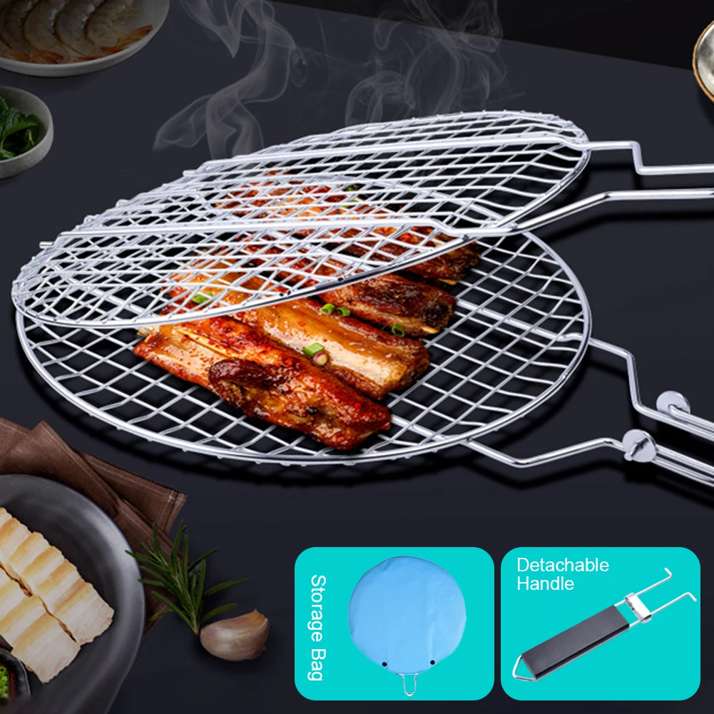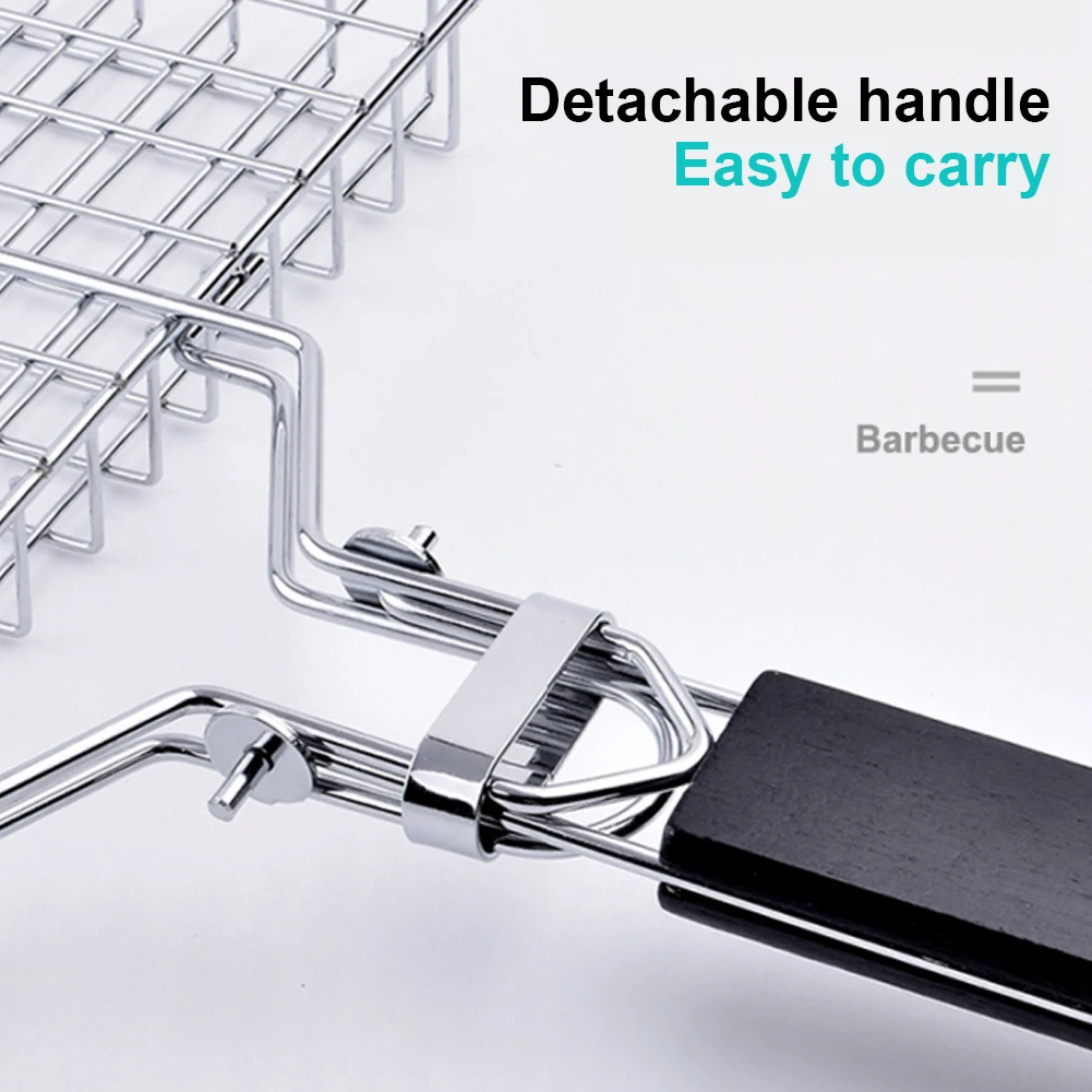 * 1. Эта корзина для гриля оснащена высококачественной рамой из нержавеющей стали 304, которая отличается нетоксичным, антипригарным, утолщенным, устойчивым к ржавчине, термостойким и прочным сроком службы.
