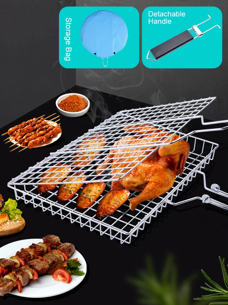 * 2. Корзина для гриля со скрещенной проволочной сеткой может похвастаться отличной загрузкой, которая может держать еду с стабильностью и безопасностью, не легко отвалиться.