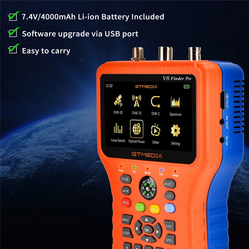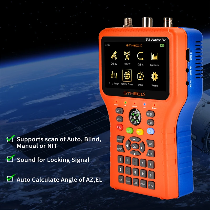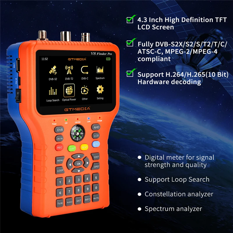 Отзывы о GTMEDIA V8 Finder Pro DVB-S2X/S2/S/T2/T/C/ATSC-C H.265 SatFinder 2 1080P HD Digital Satellite 3.5in LCD VS Satlink WS6916 - купить по