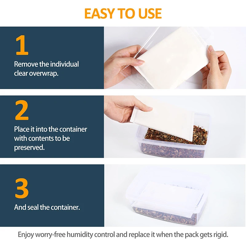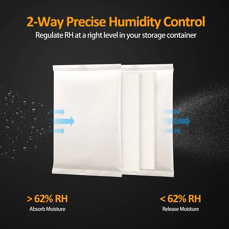 [2-способ точного Управление влажностью]-Ингредиенты изготовлены из инновационных материалов для контроля влажности на растительной основе, которые обеспечивают лучшую эффективность адсорбции/десорбции, чем традиционные регуляторы влажности, такие как силикагель. RH можно точно отрегулировать до нужного уровня путем добавления и удаления влаги из контейнера для хранения по мере необходимости.[Отсутствие утечек]-Внутри каждого усердия 2-Way пакет управления влажностью твердый коврик растительного волокна, не любой жидкости, так что не беспокойтесь о том, что внутренний раствор протекает на ваши вещи.[Безопасная двойная упаковка]-Наружные герметичные мешки, Каждая сумка для контроля влажности имеет индивидуально запечатанную посылка. Предотвращает случайную активацию, чтобы сохранить свежесть и обеспечить безопасное прибытие пакетов контроля влажности.[Как использовать]-Каждый 8g 2-полосная Управление влажностью упаковка помещается в контейнер и герметичен, чтобы сохранить свежесть, вкус, аромат и увеличить срок годности продукта.[Длительный срок]-Сохраняет ваши предметы хранения на точных RH уровнях до 3-6 месяцев в деревянном humidor и до 1 года в банке mason, просто замените его, когда пакет затвердевает.