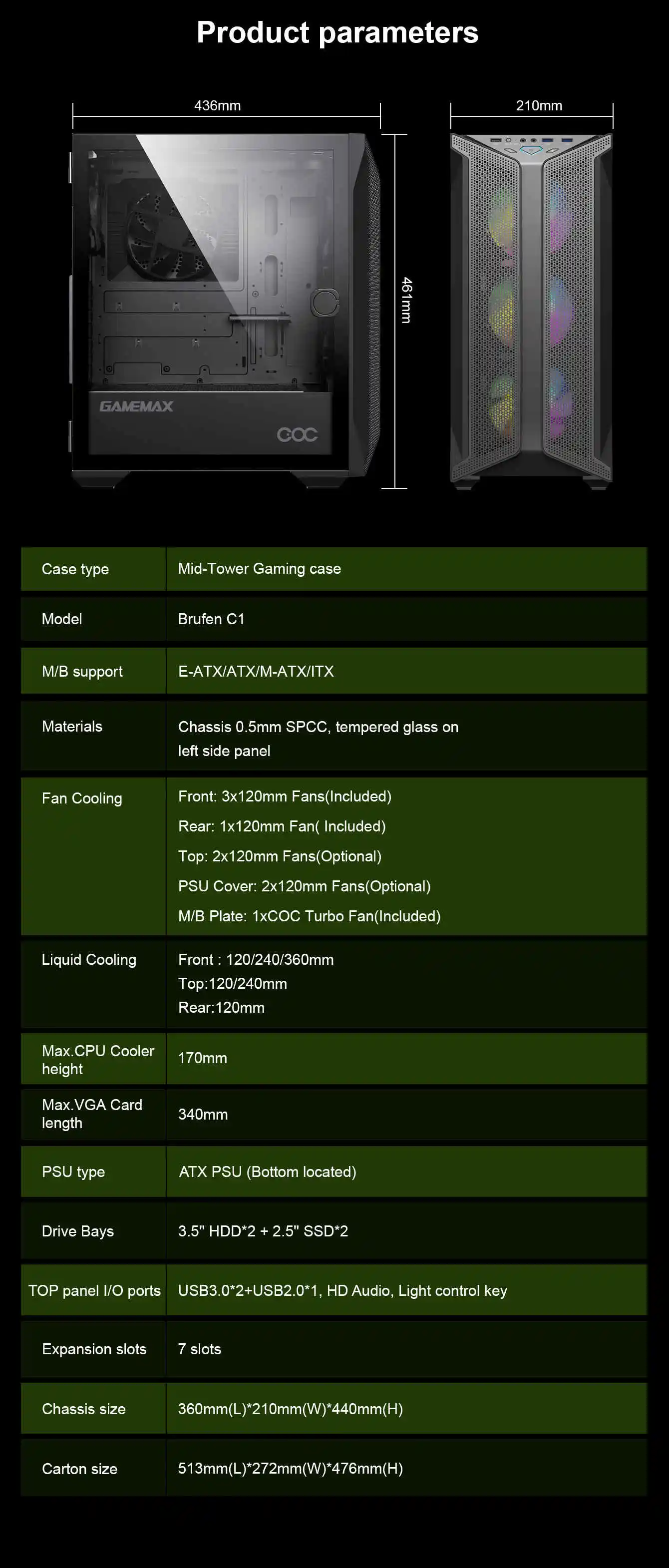 GameMax Brufen C1 COC Gaming Chassis, Born for Intel Gen 10th CPU cooling solution of the system, COC-это охлаждение и разгон, что означает охлаждение. Это новый тип структуры рассеивания тепла. Турбокомпрессор добавляется к основной плате шасси, чтобы создать новый Т-образный целевой воздуховод внутри системы ПК, чтобы помочь охладить различные аксессуары в системе пк