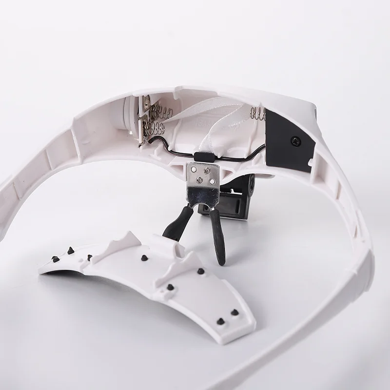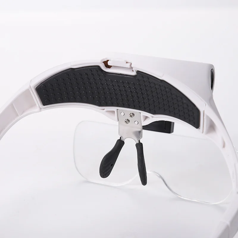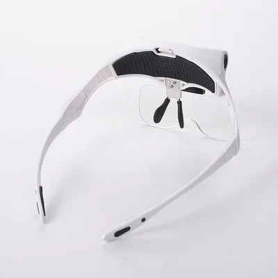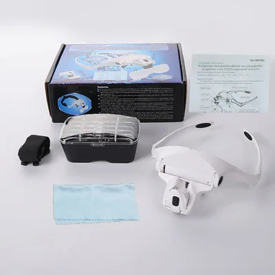 Головная лупа, с 2 светодиодными лампами-светильник, 5 сменных линз, 1x 1.5x 2x 2.5x 3.5x увеличительные линзы, поверхность белого цвета, более модная и благородная. Используется для чтения и ремонта.