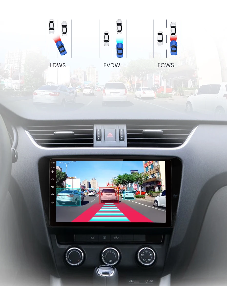 > Функция ADAS: предупреждение об отклонении полосы движения, напоминание о переднем автомобиле и предупреждение о переднем расстоянии.