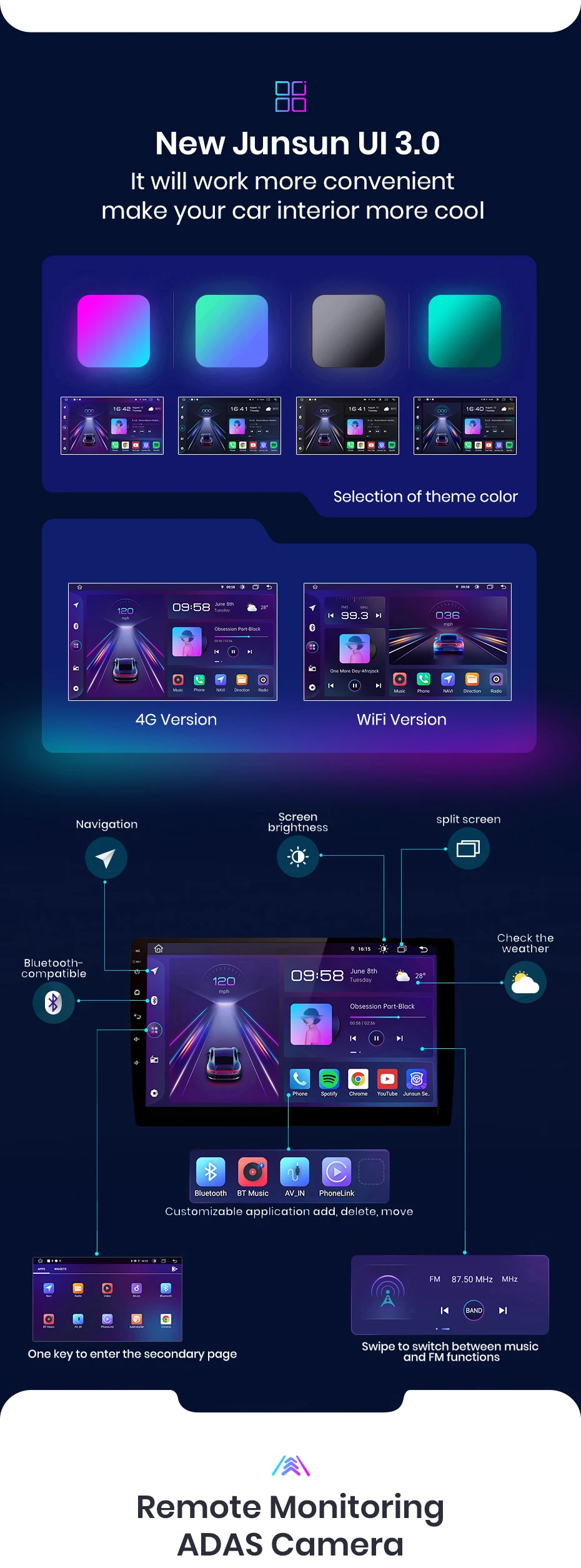 Junsun имеет предварительно установленные автономные карты и постоянно свободно обновляется; И поддерживает дорожные условия в режиме реального времени при подключении к Интернету.