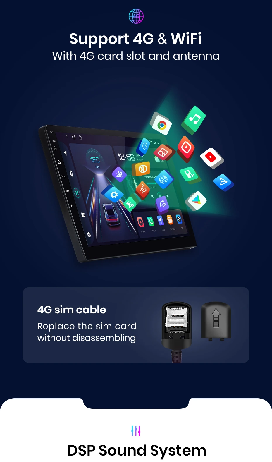 Устройство оснащено Навигатором, воспроизведением музыки, функцией помощи в парковке и т. Д. Однако для подключения радио к Интернету вам нужно будет использовать смартфон в качестве модема. Поэтому для тех владельцев автомобилей, которые активно используют Интернет во время путешествий, мы рекомендуем приобрести устройство с 4G. Так как если телефон постоянно находится в режиме модема, он быстро разрядится.