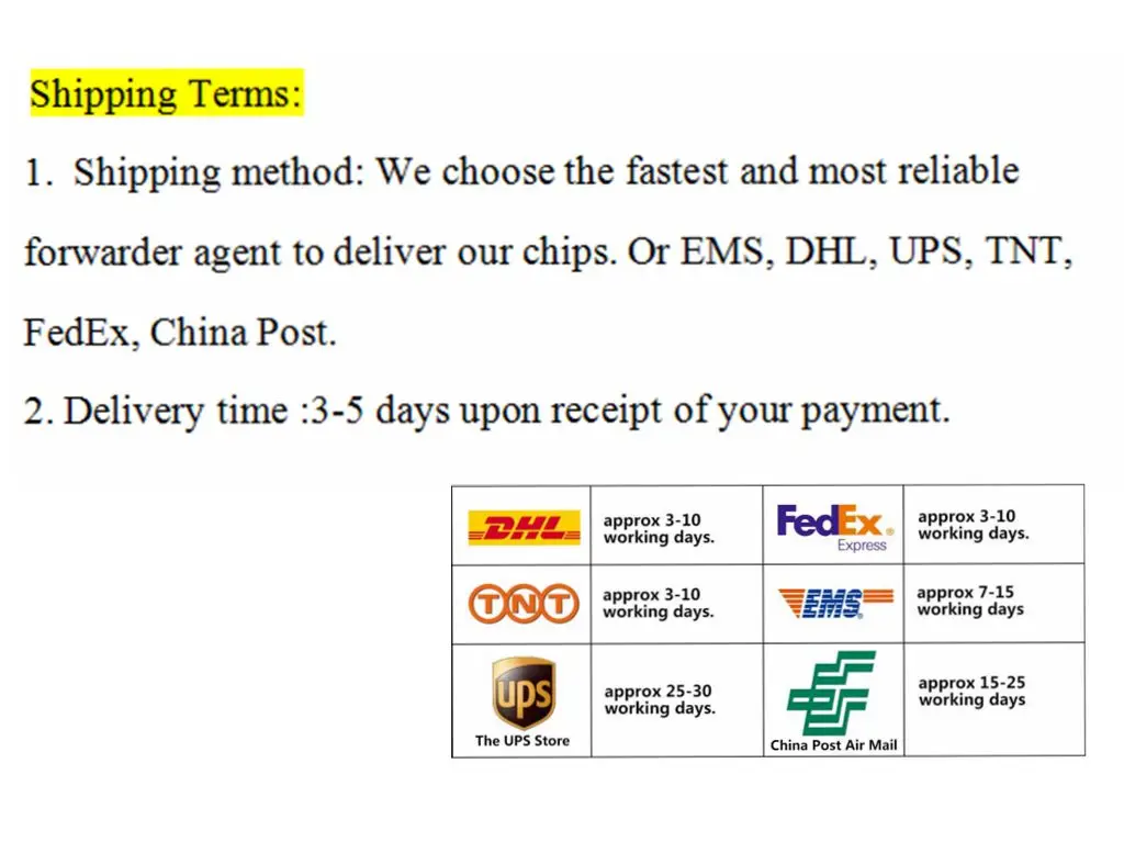 Чип pIctureПоказан в нашем магазине для вашего обзора. Это может немного отличаться, когда вы получили, но мы обещаем, что каждый чип, который мы отправили вам, может работать хорошо, как только ваш номер детали или версия верны.