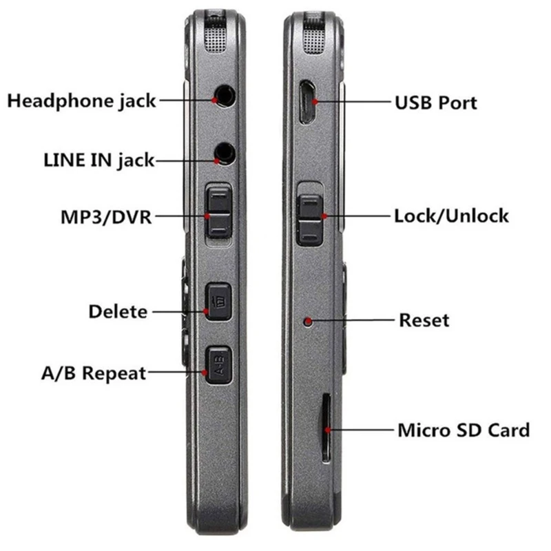 Супер длительный срок службы батареи: сверхнизкая мощность цепи для достижения долгое время записи, этот аудио рекордер может работать непрерывно до 32 часов и более.