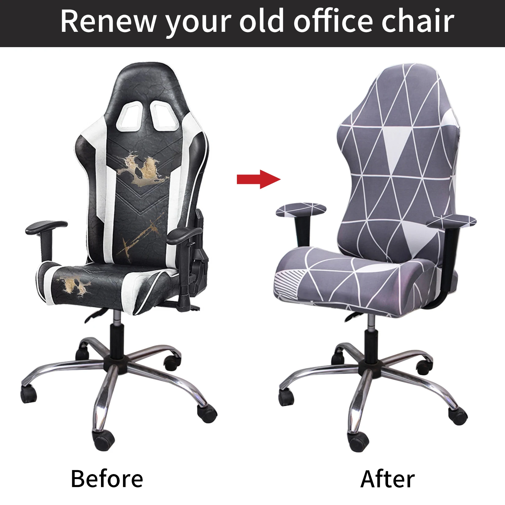 Офисное компьютерное игровое кресло, чехлы, растягивающееся спандекс кресло для геймеров, чехол для сиденья с принтом, домашний гоночный стол, вращающийся чехолИгровой чехол для кресла спандекс, офисный эластичные чехлы на кресла, чехлы для сидений, чехлы для компьютерного кресла